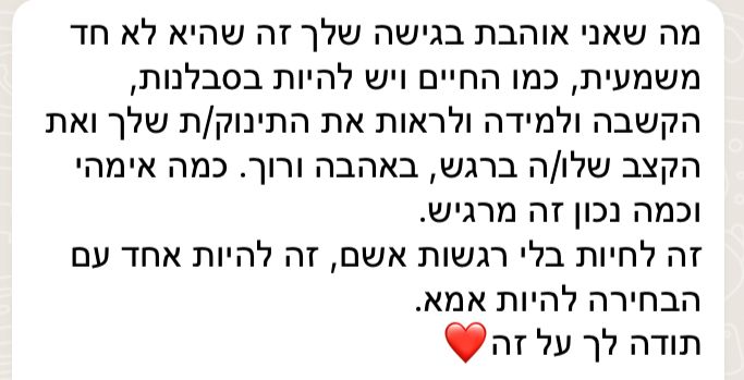 וכמה רוגע נכנס לחיינו כשאנחנו מוצאות את המקום שלנו עם אימהות בדיוק כמונו.
