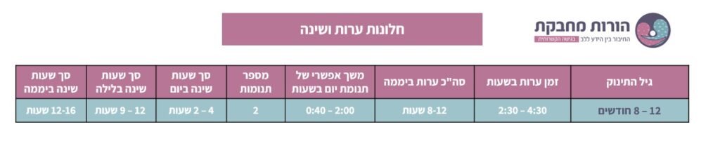 שימו לב שבגיל הזה, חלונות הערות של התינוק גדלים משמעותית ויכולים להגיע עד 4:30 שעות.