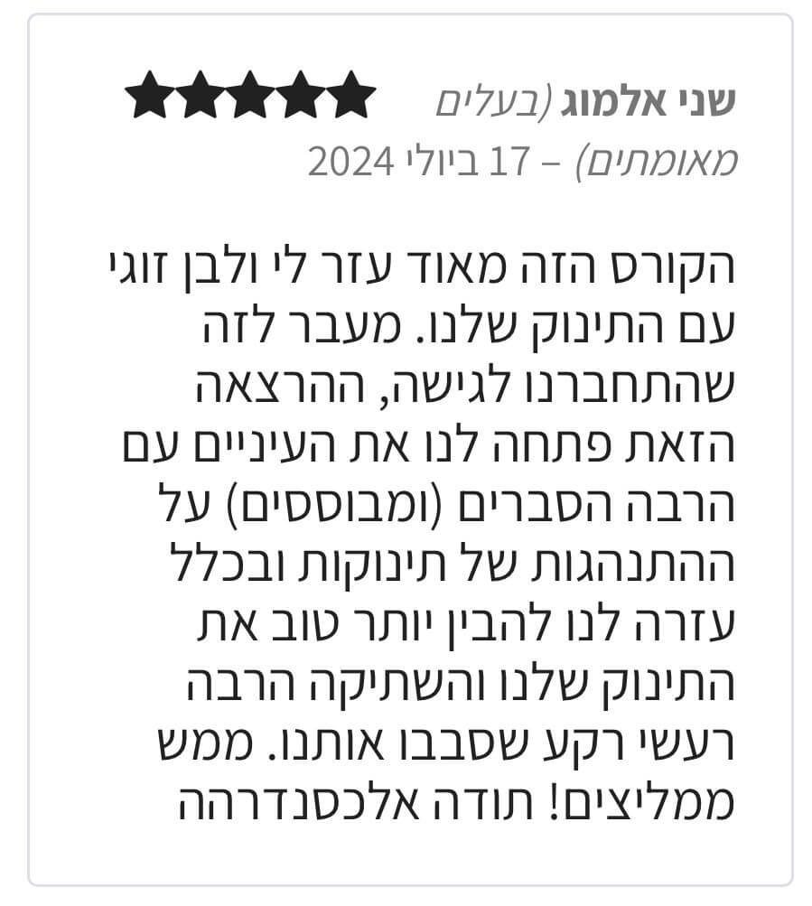 בהחלט! התכנית תוכננה כך שתהיה פרקטית ותיתן מענה לאתגרי השינה שלכם. כל פרק בנוי בצורה מסודרת שמוסיף לך הבנה מעמיקה יותר בצרכי התינוק שלך יחד עם הנחיות צעד אחר צעד עד הפתרון של האתגר. הורים רבים ראו שיפור בשינה כבר שבוע אחרי יישום הכלים שלמדו.